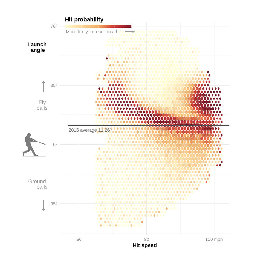 Replicating and recreating a graph that looks at hit success as a function of launch angle and velocity.