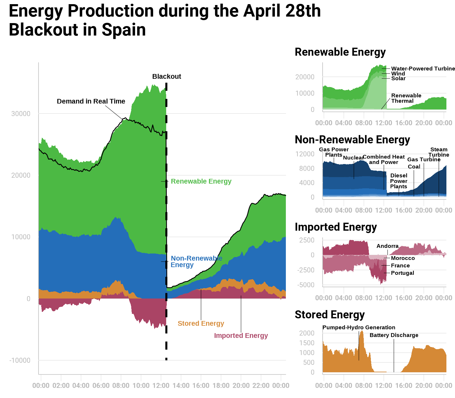 Tracking the generation and storage of energy in Spain April 28th, 2025.