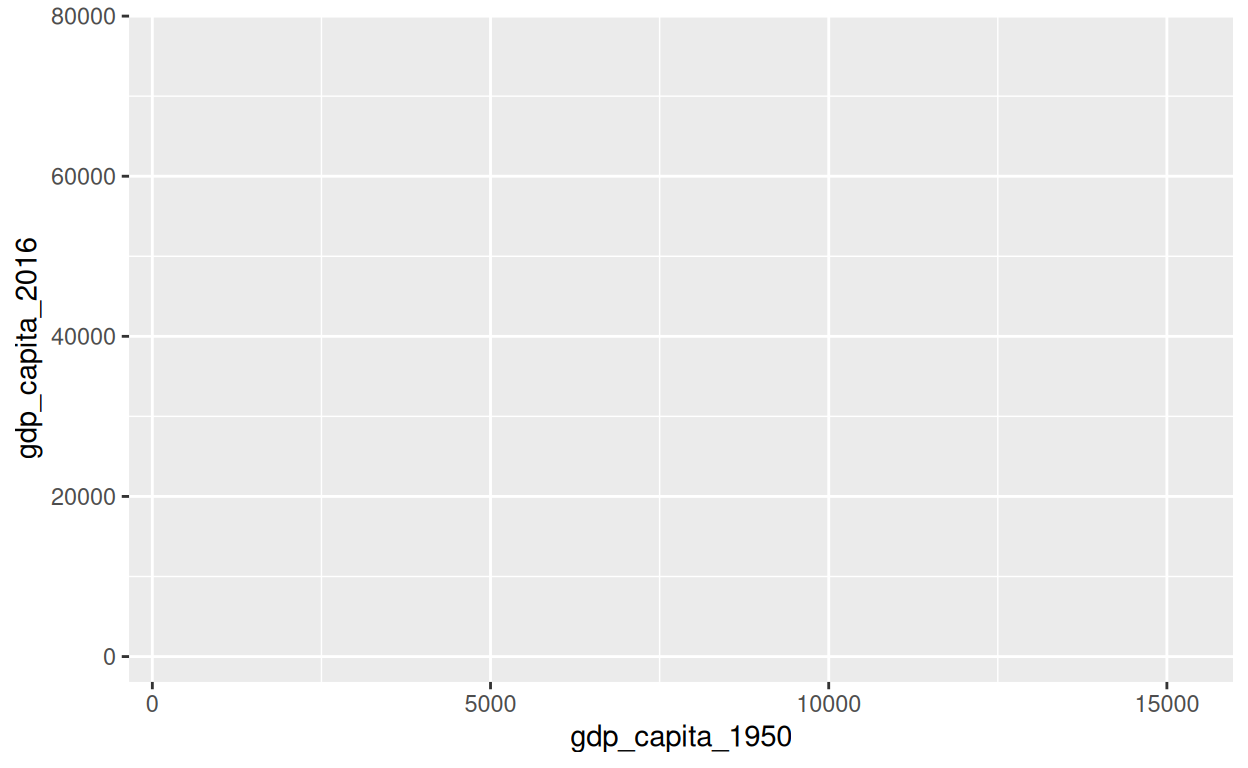 We pipe our gdp dataset into ggplot() and define our desired aesthetics: