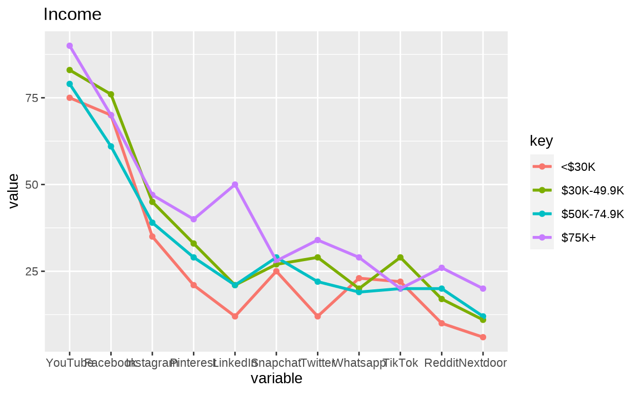 title = {Data Visualization | MSc CSS: Use of Social Media Platforms in 2021 (U.S.) by Demographic Group},