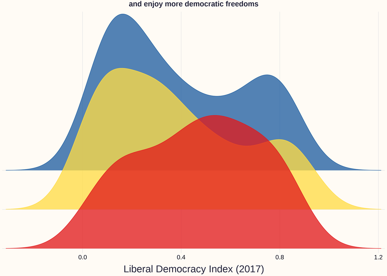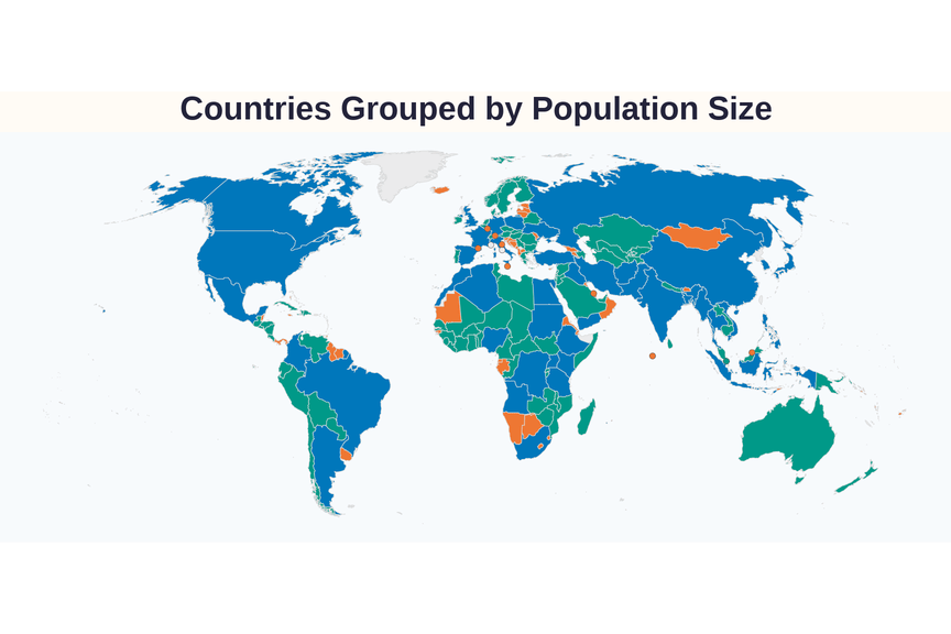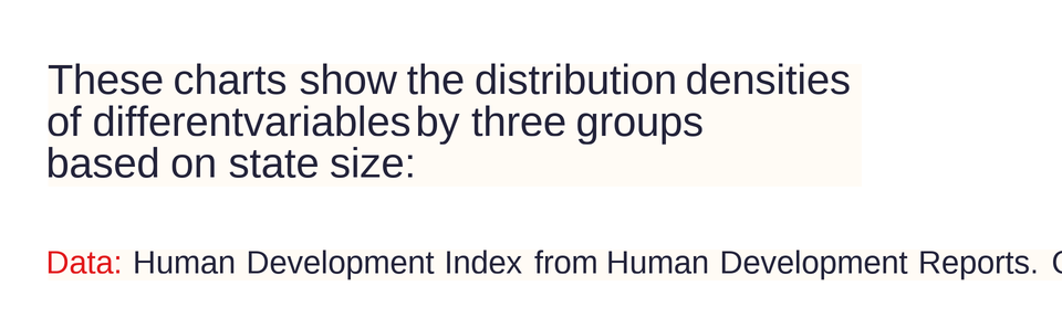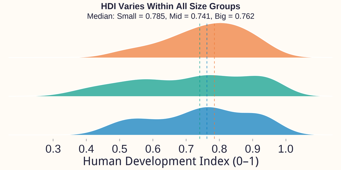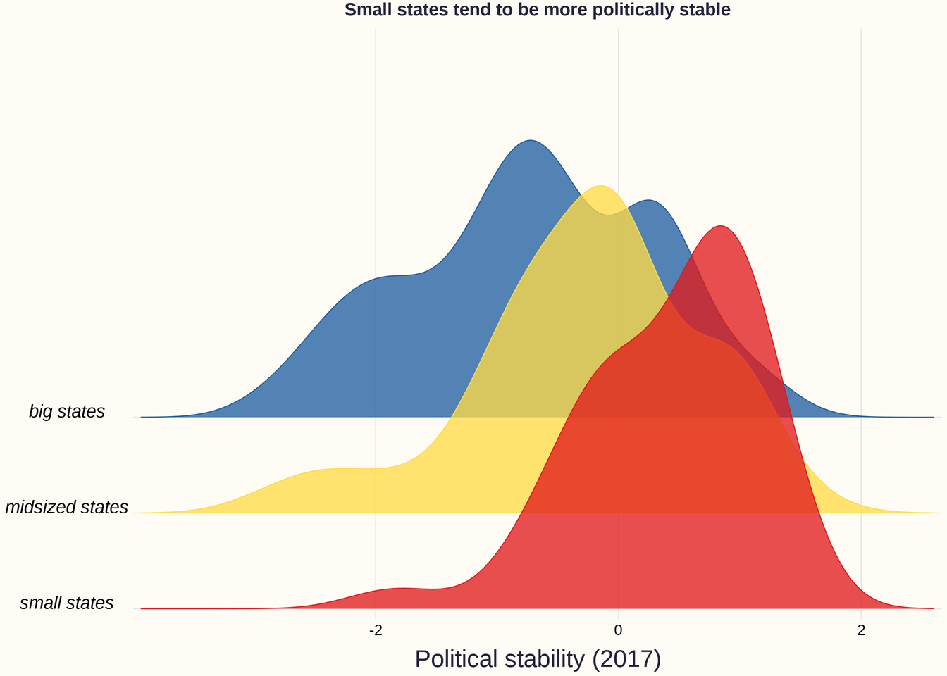 The original visualization captures this idea by placing several indicators side by side and grouping countries by population size. It shows that small states frequently appear among the best performers on governance and democracy, while also revealing differences in how far various groups have progressed over time. Replicating this figure offers a concrete exercise in computational social science. It requires handling heterogeneous data sources, making careful choices about visual encoding, and thinking critically about how design decisions shape interpretation. The analysis is descriptive rather than causal, but it illustrates how empirical patterns become more visible when multiple dimensions of development are presented in a coherent visual narrative.