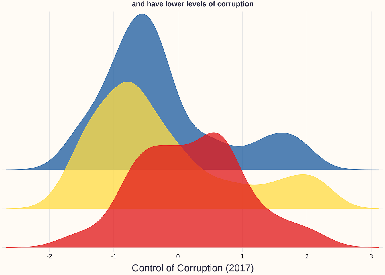 Finally, the dataset is filtered to remove incomplete or problematic cases. Countries with missing HDI values, non-standard codes, or incomplete governance data are excluded to keep the final visualizations interpretable and comparable. The cleaned, merged dataset—referred to in the code as w1—contains all the variables required for the scatterplot, ridge panels, and world map. With this unified structure in place, the rest of the visualization can be built straightforwardly on top of it.