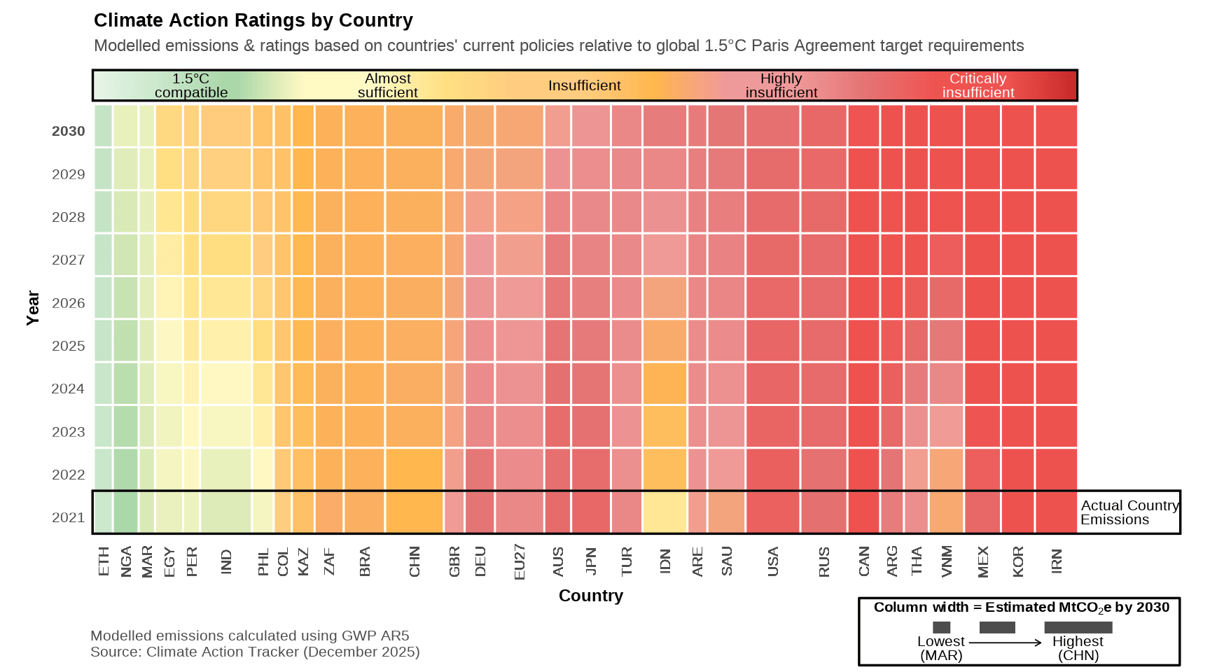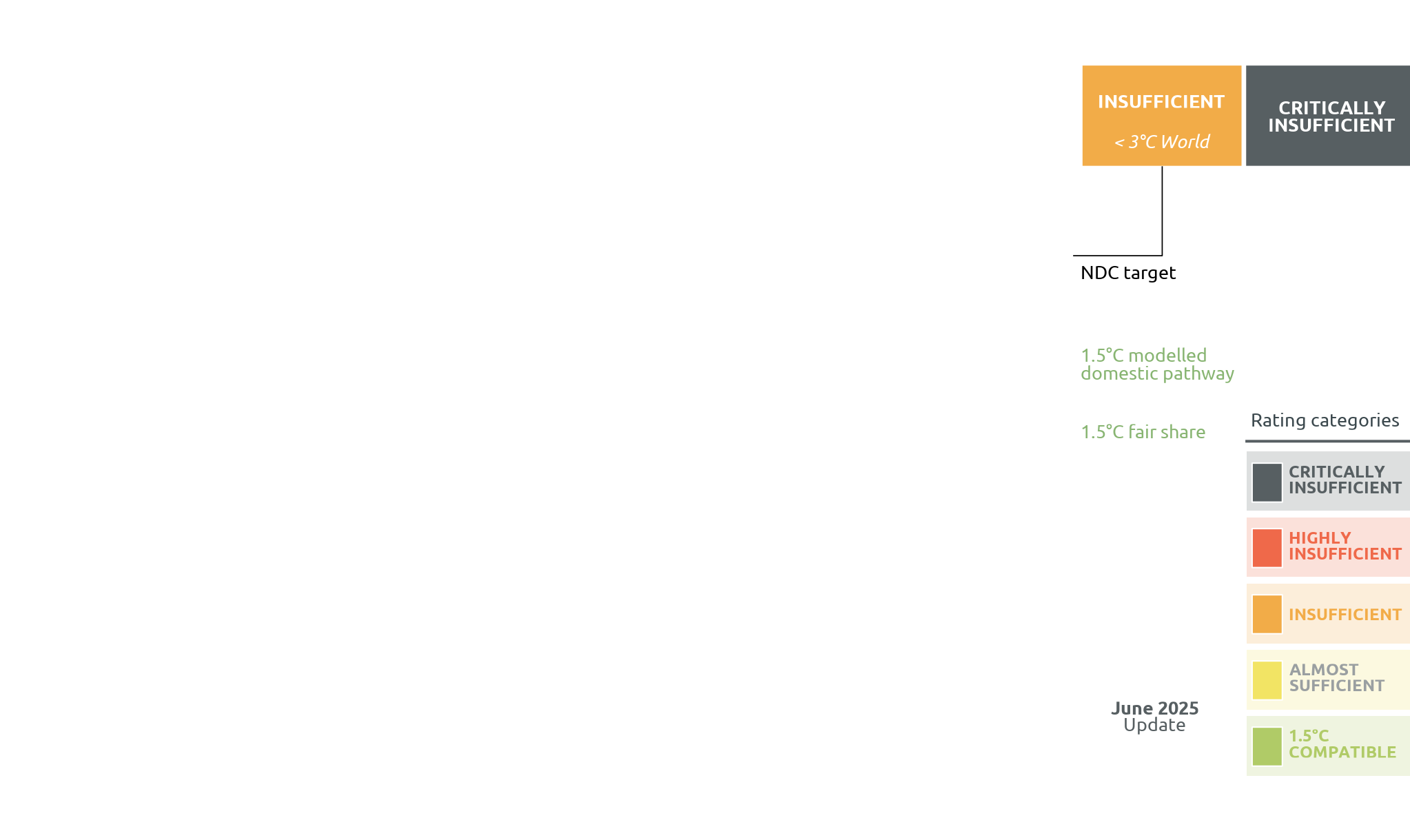 subtitle = "Modelled emissions & ratings based on countries' current policies relative to global 1.5°C Paris Agreement target requirements",